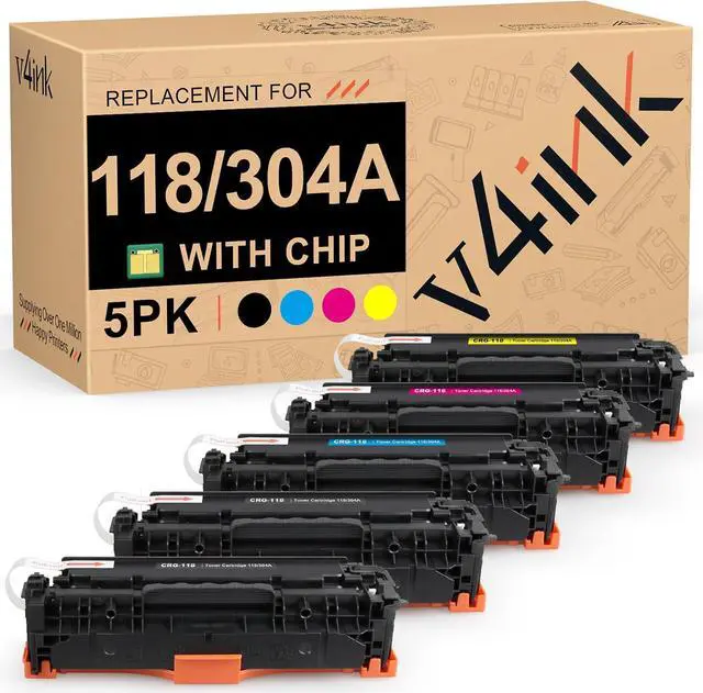 1- Includes 5 Packs of Remanufactured Canon 118 HP 304A toner cartridges (2Black 1Cyan 1 Yellow 1Magenta) and 1 x User's manual
