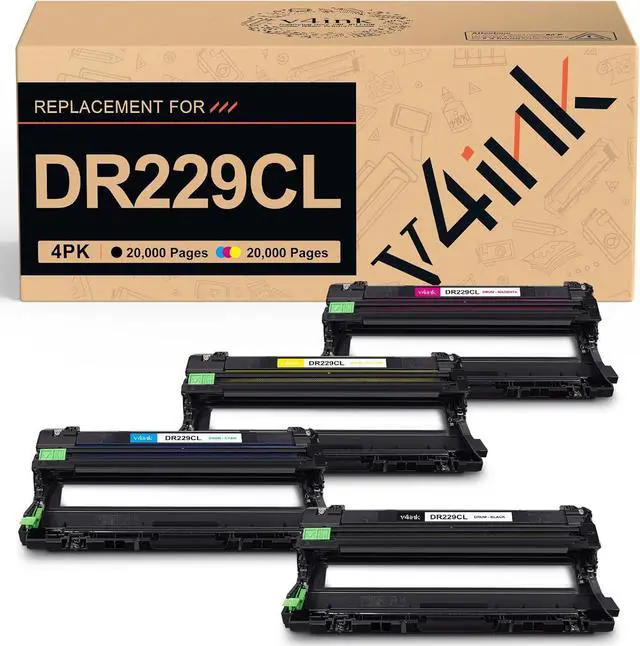 Package Includes: 1 x User Guide, 1 x DR229CL Black drum unit, 1 x DR-229CL Cyan drum unit, 1 x DR229CL Magenta drum unit, 1 x DR 229CL Yellow drum unit(Total 4 Pack)