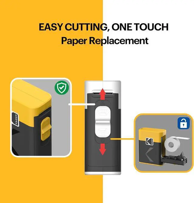 [ Safe for use ] Unlike conventional label makers, KODAK Label printer has the cutting blade positioned inside, allowing for safe label cutting without the risk of hand injury. You don't need to worry even if your kids uses the label maker alone!