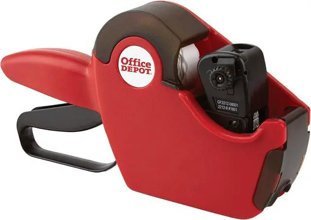 Office Depot Brand price marking labeler features a lightweight and easy to use comfortable design. Labeler comes pre-loaded with labels and ink roller. Prints up to 8 characters Fast label loading and easy application. Comes with 1-line labeler, 2 white label rolls and 1 red label roll. Each label roll contains 1,200 labels. Office Depot Model OD01-8 1-Line Labeler is compatible with Office Depot OD01-8 one-line labels - SKU's 3333494(White) and 9948090(Red)