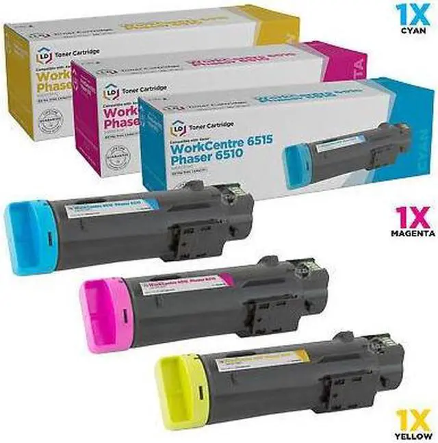Save and print even more when you shop with LD Products! This offer includes (1) 106R03690 extra high yield cyan, (1) 106R03691 extra high yield magenta and (1) 106R03692 extra high yield yellow toner cartridges. Why pay twice as much for brand name Xerox toner when our compatible printer supplies are backed by a 100% satisfaction and LIFETIME guarantee? This toner cartridge set is compatible with Xerox Phaser 6510 and WorkCentre 6515 printers. Please note, retail packaging may vary and these cartridges will only work with printers purchased within the United States and Canada.