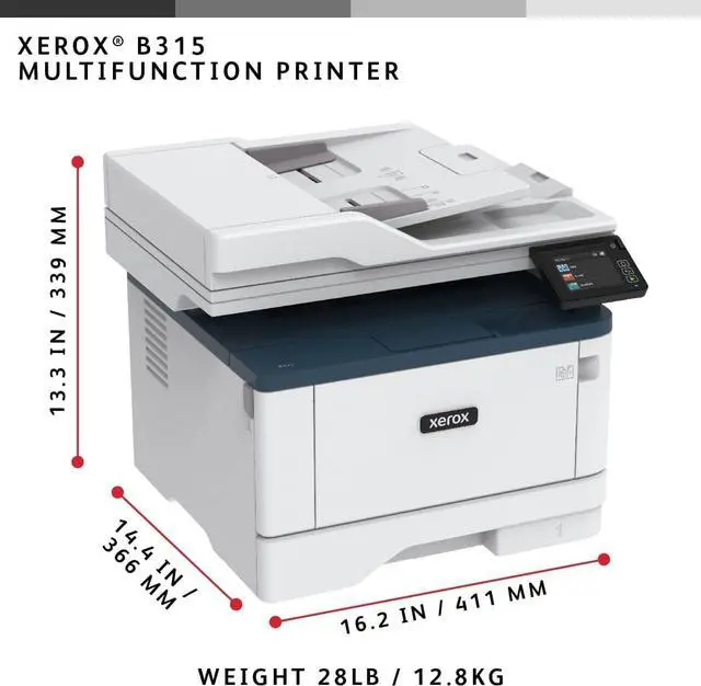 WORK FROM HOME: Perfect for small teams or home offices that need technology that fits in tight spaces and is easy to setup. The Xerox B315 is perfect for owners looking for a wireless black and white all in one printer.