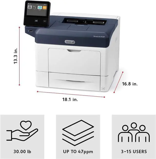 Easy, optimized productivity, Right out of the box, the Xerox VersaLink B400 Printer to consistently and flawlessly perform the tasks that make your business work more efficiently, From IT-free installation wizards, to step-by-step configuration options, youre ready to gohassle free