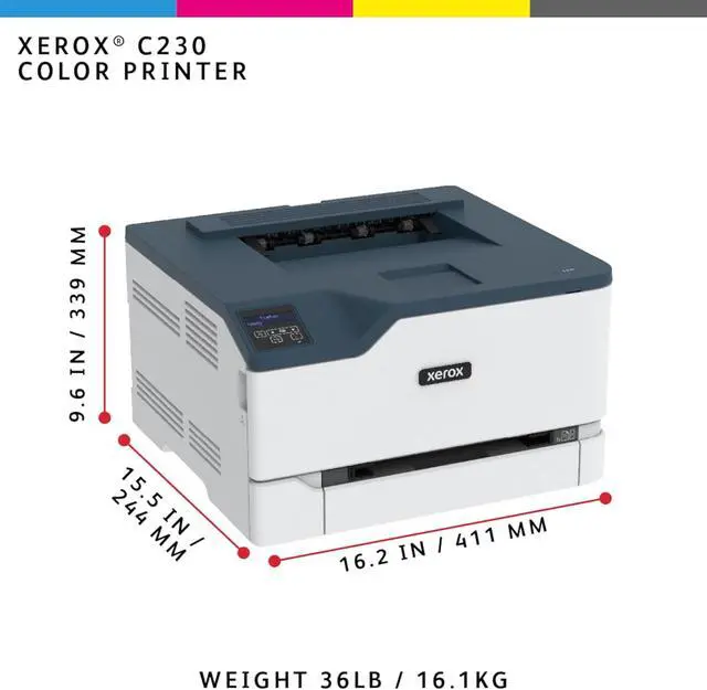 The Xerox C230 Color Printer is built for busy home and small offices that need fast, reliable color printing. Its easy to set up and ready to go right out of the box. Enjoy features like automatic two-sided printing, a 250-sheet paper tray, and built-in Wi-Fi with Wi-Fi Direct for mobile printing. With speeds up to 24 ppm (Letter), plus a 1 GHz dual-core processor and 256 MB memory, the C230 delivers performance you can count on. Designed for up to 1,500 pages per month, its compact, efficient, and sustainablewith EPEAT certification and hassle-free cartridge recycling through the Xerox Supplies Recycling Program.