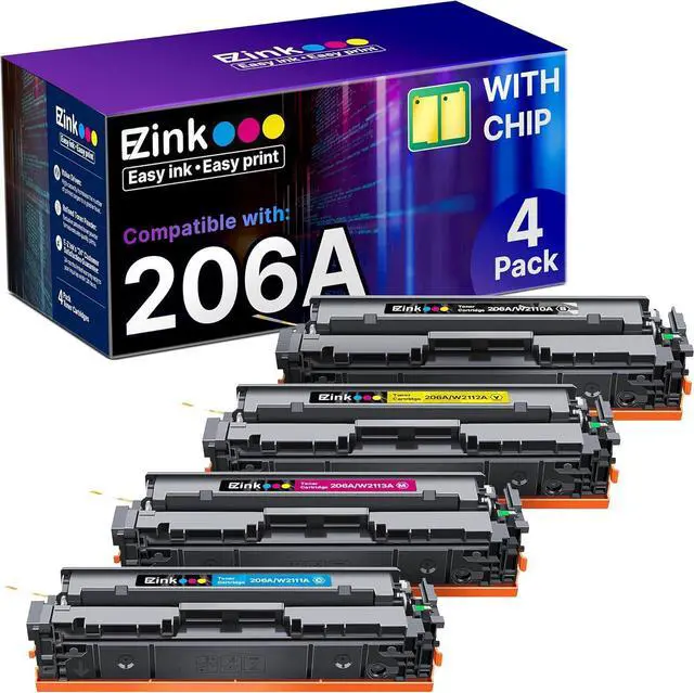 Product Name: E-Z Ink Compatible High Yield Toner Cartridges Set Replacement for HP 206 206A W2110A W2111A W2112A W2113A with Chip (Compatible For HP 206X Toner Cartridges as well)