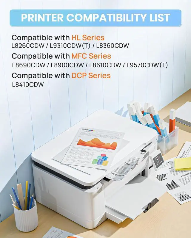 Printer Compatibility: to use with Brother MFC-L8900CDW MFC-L8610CDW MFC-L8690CDW MFC-L9570CDW MFC-L9570CDWT HL-L8360CDWT HL-L8260CDW HL-L9310CDW HL-L9310CDWT HL-L9310CDWTT DCP-L8410CDW Laser Printer
