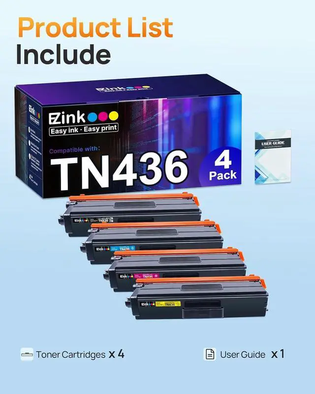 Product Name: E-Z Ink TN436 High Yield Toner Cartridge Compatible for Brother TN436 TN-436 Toner Replacement for Brother TN436 TN433 TN431 Toner to Use with Brother HL-L8260CDW, L8360CDW, L9310CDW(T), MFC-L8690CDW,L8900CDW, L8610CDW, L9570CDW(T), DCP-L8410CDW Printers (4 Pack)