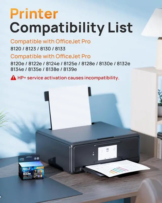 923 Ink Cartridges For HP E* series Printers: For OfficeJet Pro 8120e 8122e 8124e 8125e 8128e 8130e 8132e 8134e 8135e 8138e 8139e(*Not compatible with printers that have HP+ service activated.)