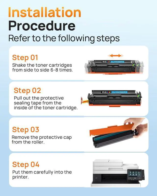 Premium quality replacement for hp 414A toner cartridges 4 pack is engineered to work with HP printers to provide consistent quality, reliability and value