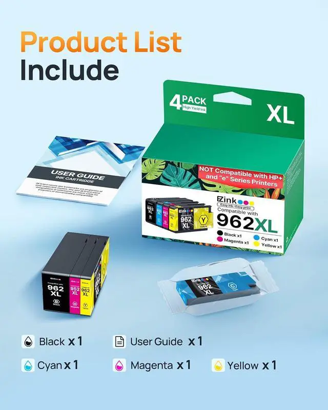 The video showcases the product in use.The video guides you through product setup.The video compares multiple products.The video shows the product being unpacked. Merchant Video Introduction E-Z Ink for hp 962xl ink cartridges combo pack