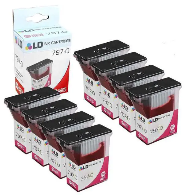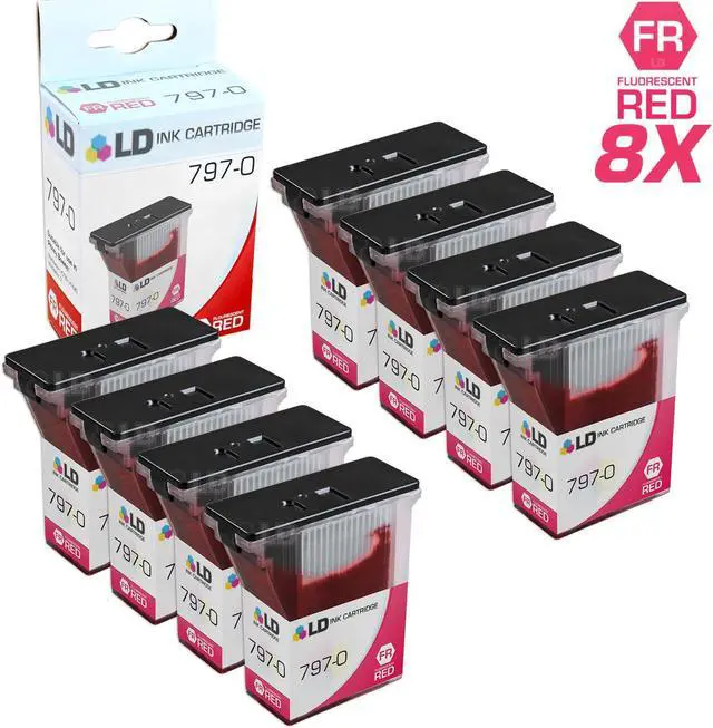 LD © Compatible Pitney Bowes 797-0 Set of 8 Fluorescent Red Inkjet Cartridges for use in Pitney Bowes MailStation K700