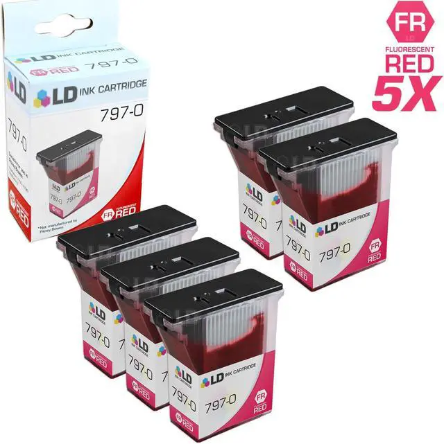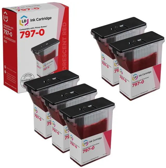 LD © Compatible Pitney Bowes 797-0 Set of 5 Fluorescent Red Inkjet Cartridges for use in Pitney Bowes MailStation K700