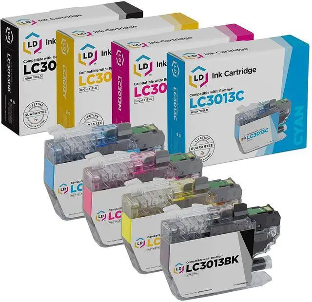 Save and print even more when you shop with LD Products! This offer includes (1) LC3013BK High Yield Black, (1) LC3013C High Yield Cyan, (1) LC3013M High Yield Magenta and (1) LC3013Y High Yield Yellow ink cartridges; they replace the Brother LC3011 Standard Yield ink series. Why pay twice as much for expensive brand name Brother ink when our compatible printer supplies are backed by a 100% Satisfaction and LIFETIME Guarantee? This ink cartridge set is guaranteed to work in Brother MFC-J491DW, MFC-J497DW, MFC-J690DW and MFC-J895DW printers. Please note, retail packaging may vary and these ink cartridges will only work with printers purchased within the United States and Canada. The use of compatible replacement cartridges and supplies does not void your printer warranty. We are the exclusive reseller of LD Products brand of high quality printing supplies on Newegg.