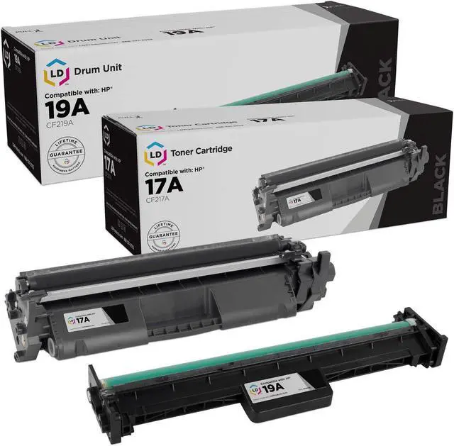 Save and print even more when you shop with LD Products! This offer includes (1) CF219A / HP 19A laser drum unit and (1) CF217A / HP 17A black laser toner cartridge. Why pay more for expensive brand name Hewlett Packard toner and drum unit sets? These cartridges are compatible with HP LaserJet M102a, M102w, MFP M130a, MFP M130fn, MFP M130fw, MFP M130nw and LaserJet Pro M102a, M102w, MFP M130a, MFP M130fn, MFP M130fw and MFP M130nw printers. Please note, retail packaging may vary and this set will only work with printers purchased within the United States and Canada.