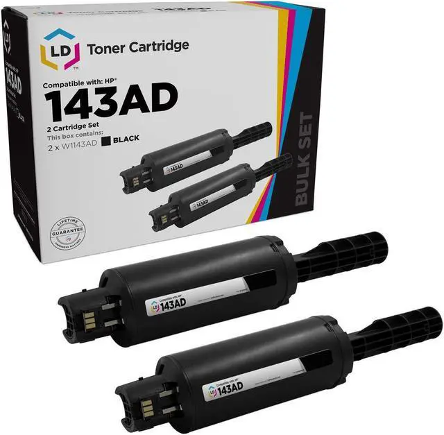 Save and print even more when you shop with LD Products! This offer includes (2) compatible replacements for HP W1143AD / 143A black toner reload cartridges. Why pay more for expensive brand name HP toner? Compatible with HP Neverstop 1001nw and 1202w laser printers. Please note, retail packaging may vary, and these cartridges will only work with printers purchased within the United States and Canada. The use of compatible replacement cartridges and supplies does not void your printer's warranty. Professionally manufactured by LD Products. HP is a registered trademark of HP Inc.