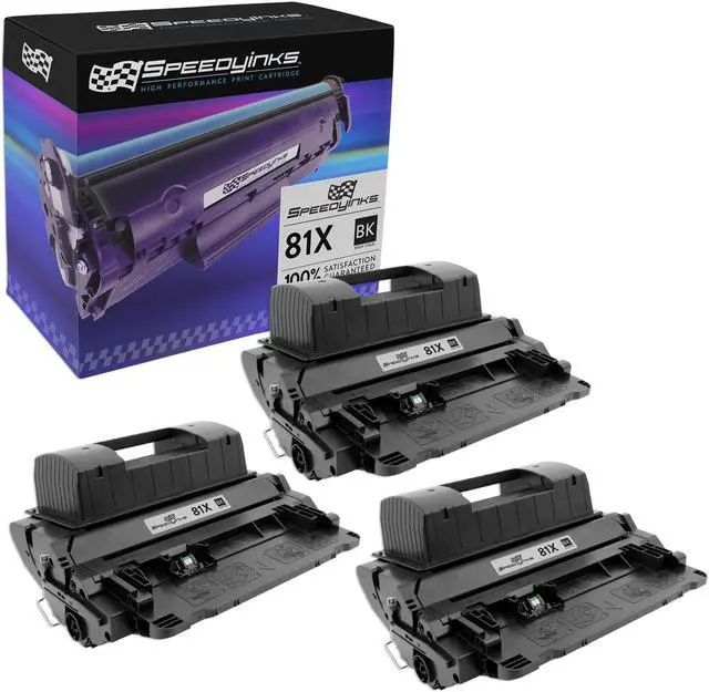 This offer includes the following set of 3 CF281X HP compatible toner cartridge replacements. Why pay more for expensive brand name HP 81X Cartridge black laser toner cartridges when our quality replacement printer supplies are built to perform? For use in the following printers: LaserJet Enterprise Flow MFP M630dn, MFP M630z, m605 toner, m605n, MFP 630f & MFP 630h. Please note, retail packaging may vary, and these cartridges will only work with printers purchased within the United States and Canada. Our compatible CF281X black laser toner is built to deliver excellent, dependable results, page after page. The use of replacement HP CF281X toner and supplies does not void your printers warranty. Professionally remanufactured by SPEEDYINKS. HP is a registered trademark of HP and is not affiliated with and 81x toner cartridgees not endorse SPEEDYINKS.