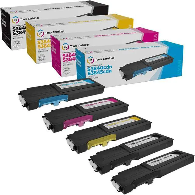 Save and print even more when you shop with LD Products! This offer includes (2) Dell 593-BCBC / 1KTWP extra high-yield black, (1) Dell 593-BCBF / G7P4G extra high-yield cyan, (1) Dell 593-BCBE / C6DN5 extra high-yield magenta and (1) Dell 593-BCBD / XMHGR extra high-yield yellow compatible replacement toner cartridges. Why pay more for expensive brand name toner? For use in Dell Color Laser MFP S3845cdn and S3840cdn printers. Please note, retail packaging may vary, and these cartridges will only work with printers purchased within the United States and Canada.