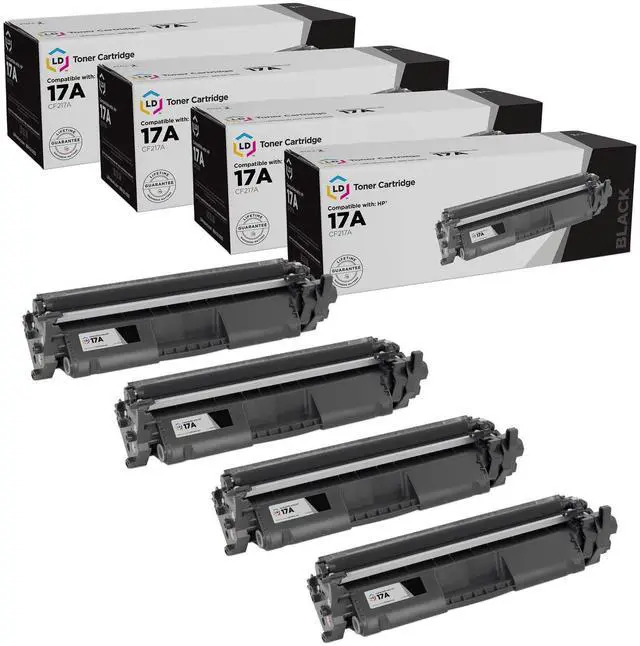 Save and print even more when you shop with LD Products! This offer includes (4) CF217A / HP 17A black laser toner cartridges; each cartridge is equipped with 100% brand new parts including a smart chip that accurately tracks your toner level. Why pay more for brand name Hewlett Packard toner? These toner cartridges are compatible with HP LaserJet M102a, M102w, MFP M130a, MFP M130fn, MFP M130fw, MFP M130nw and LaserJet Pro M102a, M102w, MFP M130a, MFP M130fn, MFP M130fw, MFP M130nw printers. Please note, retail packaging may vary and this set will only work with printers purchased within the United States and Canada.