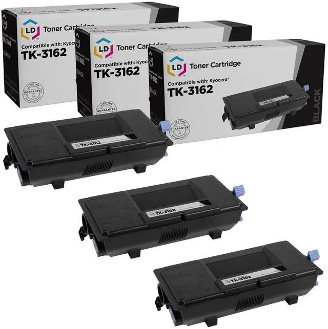 This offer includes (3) TK-3162 / 1T02T90US0 black laser toner cartridges. This toner cartridge set is compatible with Kyocera ECOSYS P3045dn, M3860idn, M3860idnf, 3145dn, M3145idn, M3645dn, M3645idn, P3260dn. Please note, retail packaging may vary and these cartridges will only work with printers purchased within the United States and Canada. The use of compatible printing supplies does not void your printer warranty. We are the exclusive reseller of LD Products brand of high quality printing supplies.