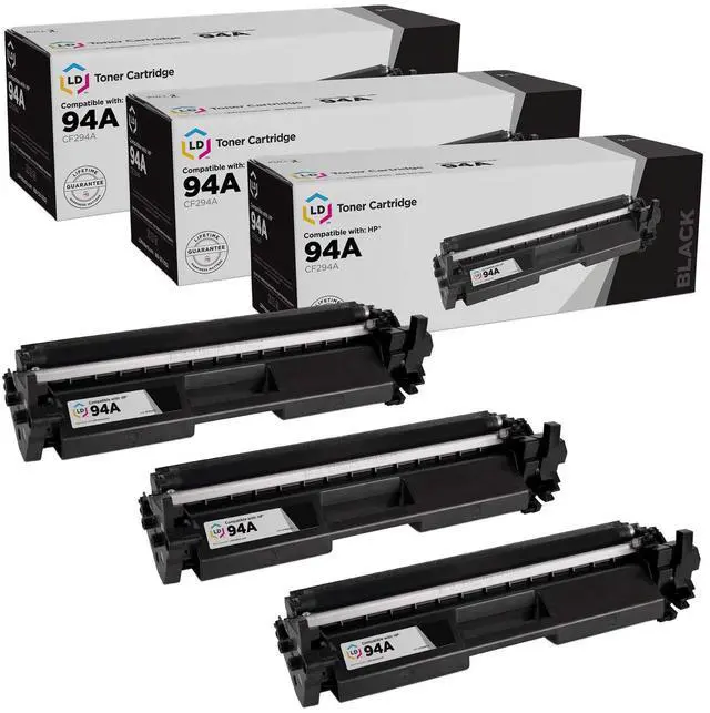 This listing contains replacement cartridges compatible with (3) HP 94A / CF294A Standard Yield Black toner cartridges. This toner cartridge pack is compatible with HP LaserJet Pro M118dw printers. Please note, retail packaging may vary and these cartridges will only work with printers purchased within the United States and Canada. The use of compatible replacement cartridges and supplies does not void your printer warranty. HP does not manufacture our compatible toner cartridges. We are the exclusive reseller of LD Products brand of high quality printing supplies.