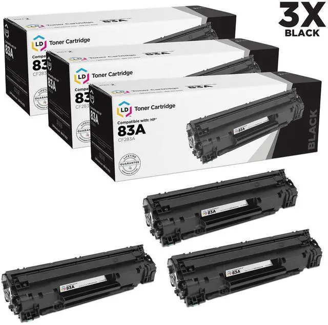 Compatible Replacements Included: 3 Pack CF283A Black | HP 83A Toner Cartridge | Standard Yield Delivers 1, 500 pages just like the original HP 83A toner cartridge | Average cartridge page yield in accordance with ISO IEC 24711This is the standard yield version of HP toner cartridge 83A Professionally manufactured by LD Products. HP is a registered trademark of HP Inc. and is not affiliated with and does not endorse LD Products. Please note, retail packaging may vary and this toner cartridge will only work with printers purchased within the United States and Canada. The use of compatible replacement printing supplies does not void your printer warranty.