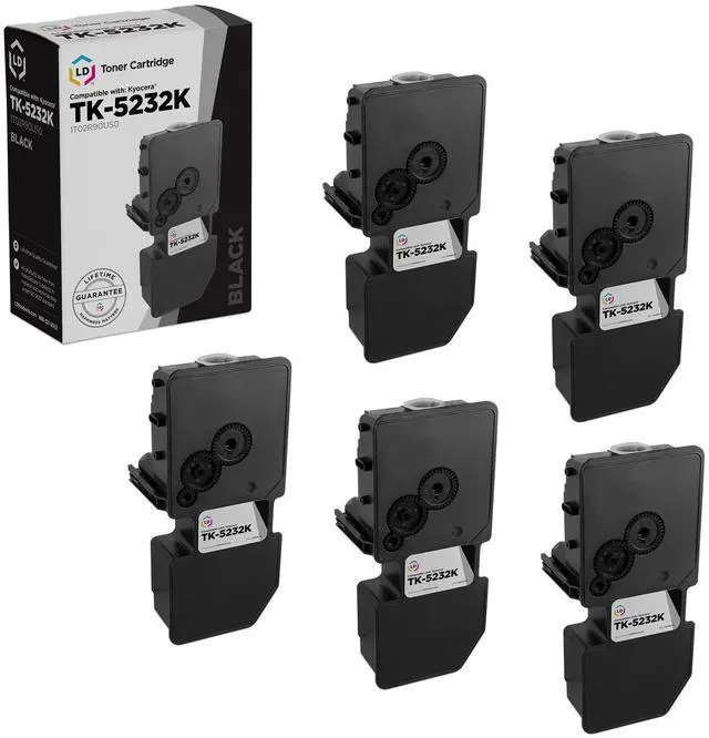 This offer includes (5) TK-5232K / 1T02R90US0 Black laser toner cartridges. This toner cartridge set is compatible with Kyocera Mita ECOSYS M5521cdw and ECOSYS P5021cdw printers. Please note, retail packaging may vary and these cartridges will only work with printers purchased within the United States and Canada. The use of compatible replacement printing supplies does not void your printer warranty. We are the exclusive reseller of LD Products brand of high quality printing supplies.