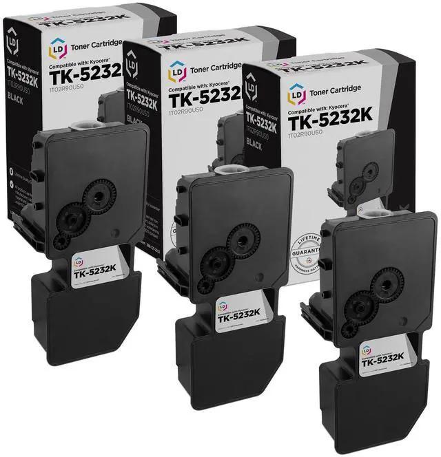 This offer includes (3) TK-5232K / 1T02R90US0 Black laser toner cartridges. This toner cartridge set is compatible with Kyocera Mita ECOSYS M5521cdw and ECOSYS P5021cdw printers. Please note, retail packaging may vary and these cartridges will only work with printers purchased within the United States and Canada. The use of compatible replacement printing supplies does not void your printer warranty. We are the exclusive reseller of LD Products brand of high quality printing supplies.