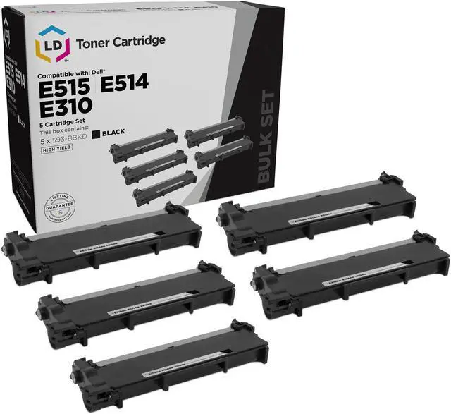 This listing contains 5 593-BBKD high yield black laser toner cartridges. This set works in the following Dell Laser and