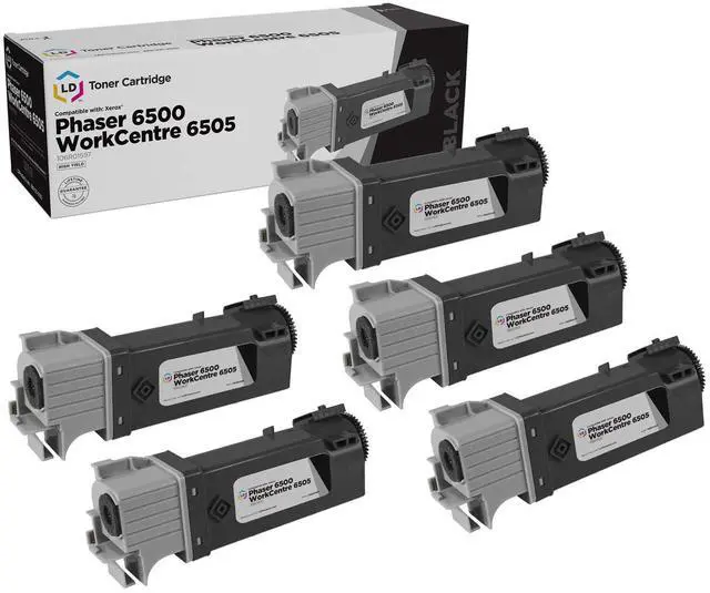 This listing contains 5 Replacements Compatible with Xerox 106R01597 Black toner cartridges. This combo set is compatible with the following printers Xerox Phaser 6500, 6500/DN, 6500N, & WorkCentre 6505. Please note, this item will only work with printers purchased within the United States and Canada. Please note, this item will only work with printers purchased within the United States and Canada. Please note, this item will only work with printers purchased within the United States and Canada. We are the exclusive reseller of LD Products brand of high quality printing supplies.