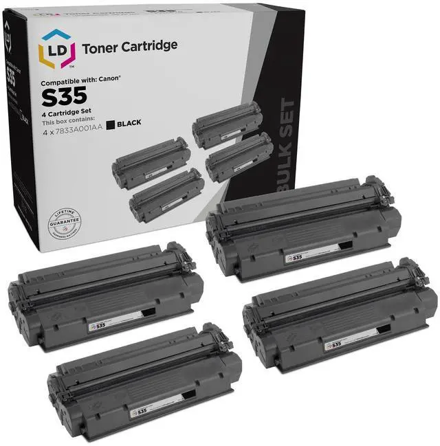 Save and print even more when you shop LD Products! This product includes an LD Remanufactured Toner Cartridge Replacement for Canon S35 7833A001AA (Black, 4-Pack). Why pay more for a branded name when our compatible printer supplies deliver excellent quality results for a fraction of the price? Our printer supplies are good for home, office or when you're running a business. Our products are put through a rigorous testing process where they are monitored for quality and reliability. Please note, retail packaging may vary and will only work with printers purchased within the United States and Canada.