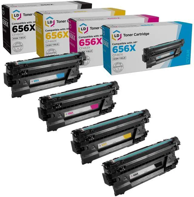 This Item Includes LD Compatible Toner Cartridge Replacements for HP 656X High Yield (Black, Cyan, Magenta, Yellow, 4-Pack). We offer printer cartridges for hard-to-find printer models. Our cartridges are good for home, office or when you're running a business. Our products are put through a rigorous testing process where they are monitored for quality and reliability. Knowing the toner cartridge that works most efficiently with your printer model is important. Please note, retail packaging may vary and these cartridges will only work with printers purchased within the United States and Canada.