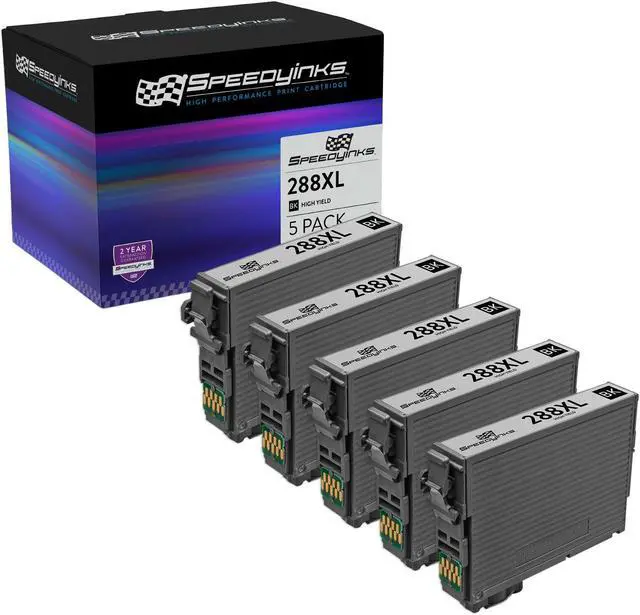 Save and print even more when you shop with Speedy Inks! This listing contains (5) T288XL120 high yield black ink cartridges; they replace the T288120 standard yield series. Why pay more for brand name Epson cartridges when our remanufactured printer supplies are built to perform and meet or exceed the same quality standards as the original brand? These cartridges are compatible with the Epson Expression XP-330, XP-430 and XP-434 printers. Please note, retail packaging may vary and these cartridges will only work with printers purchased within the United States and Canada. The use of remanufactured printing supplies does not void your printers warranty.