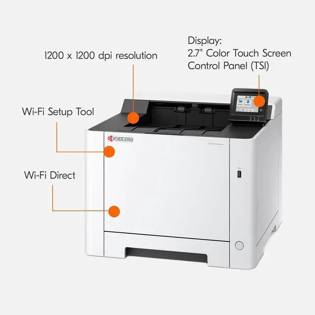 DILIGENT: Color Laser Printer QUALITY: High quality output at true 1200 x 1200 dpi SPEED: Up to 27 pages per minute CONTROL PANEL: Color 2.7" TSI with touch panel EFFORTLESS SETUP: Connect to a Wi-Fi network easily using your mobile device.