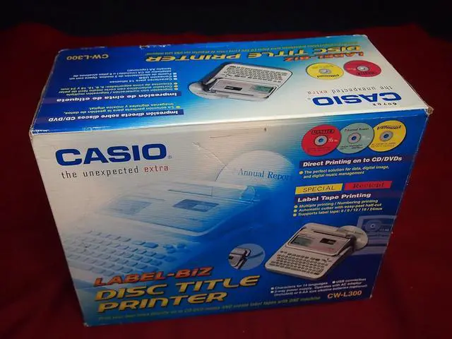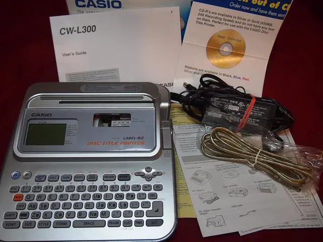 Includes ink ribbon cassette and tape cartridge, USB cable