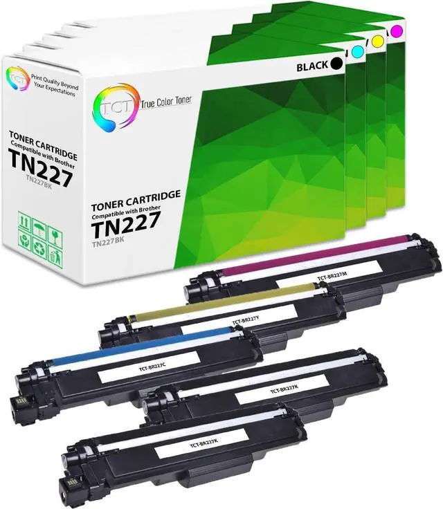 Package Contains the Following TCT Compatible Replacement Toner Cartridges: 2 × TN-227BK Black, 1 × TN-227C Cyan, 1 × TN-227M Magenta, 1 × TN-227Y Yellow for the Brother TN227 Series
