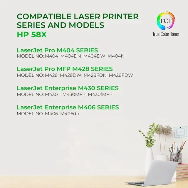 Package Contents: 1 × TCT Compatible Replacement Monochrome Toner Cartridges for the HP CF258X - 58X