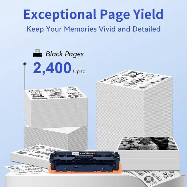 High Page Yield: Up to 2,400 pages for the 414A black toner cartridge (Letter/A4, at 5% coverage)