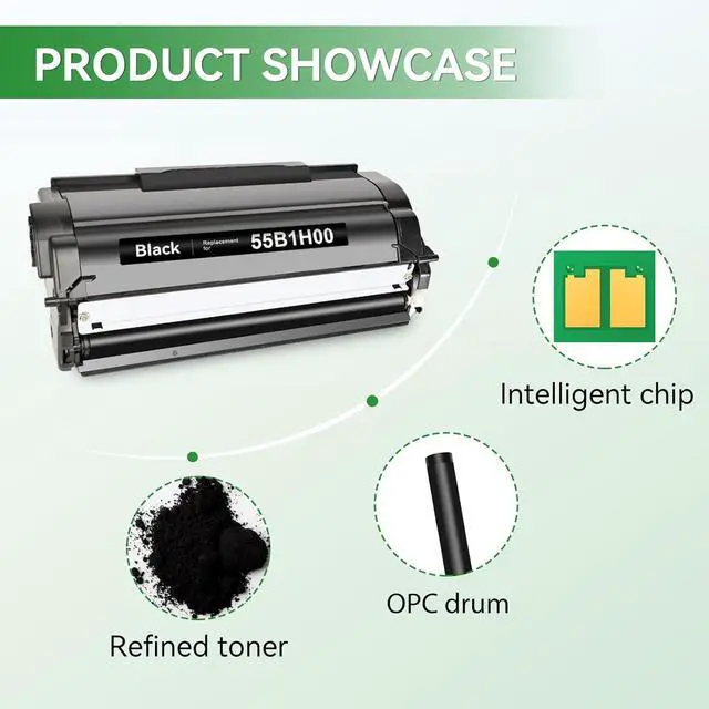 Package Contents1 x 55B1H00 high yield black toner cartridge remanufactured Lexmark 55B1H00 toner cartridge