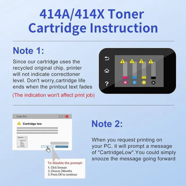 With Chip: Experience seamless compatibility with HP 414X Toner Cartridges 4 Pack High Yield. Our cartridges feature built-in chips, eliminating the need to transfer old ones