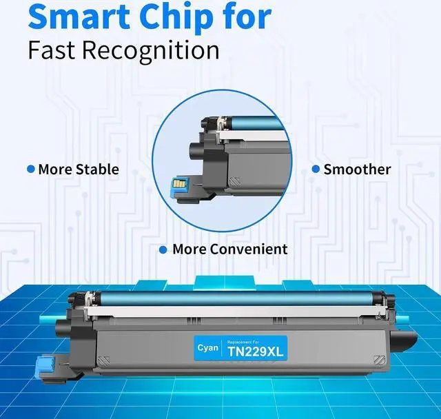 Latest Smart CHIP: Our TN229XL high yield black toner cartridge equipped with the latest smart chip ensures the high compatibility and makes it easier to use without replacing the chip from the OEM TN229XL TN-229XL TN229 TN229XXL.This helps you be more productive