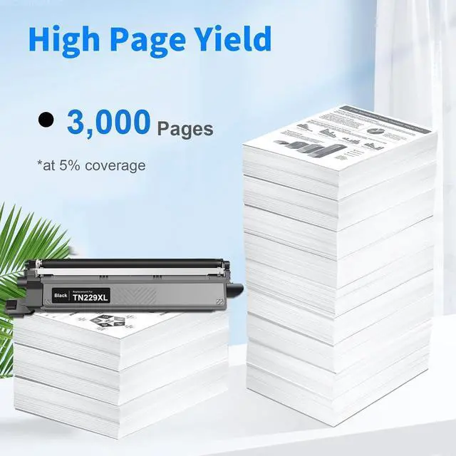 Estimated High Page Yield: each TN229XLBK TN229 TN229XL toner up to 3,000 pages (based on 5% coverage)