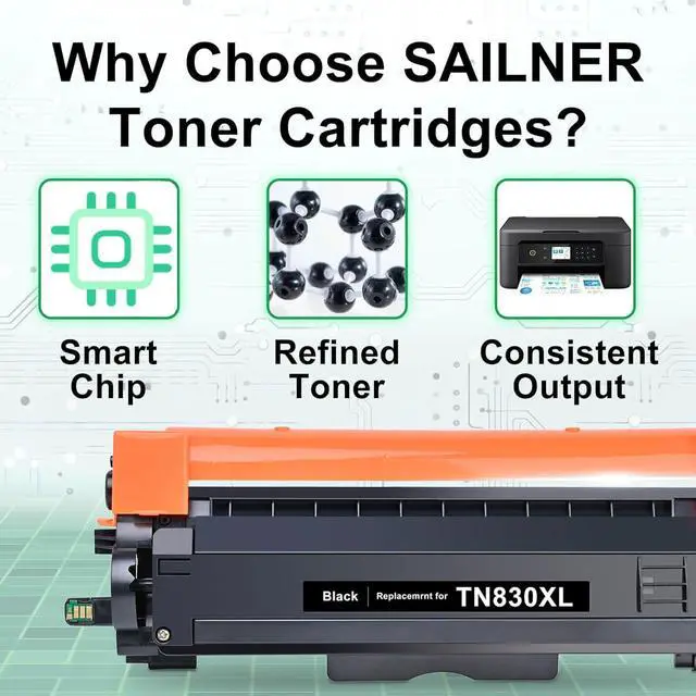 Smart Chip: Compatible tn830xl toner for brother printer features an advanced chip for ultra-fast, highly responsive communication with your printer, delivering flawless performance with every print