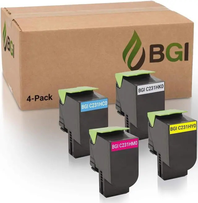 BGI Compatible Replacement Toner for Lexmark C2325dw MC2325adw C2325 C2425dw MC2425adw C2535dw MC2535adwe MC2640adwe Toner Ink | C231HK0 C231HC0 C231HM0 C231HY0 | Black Cyan Magenta Yellow 4-Pack | High Yield