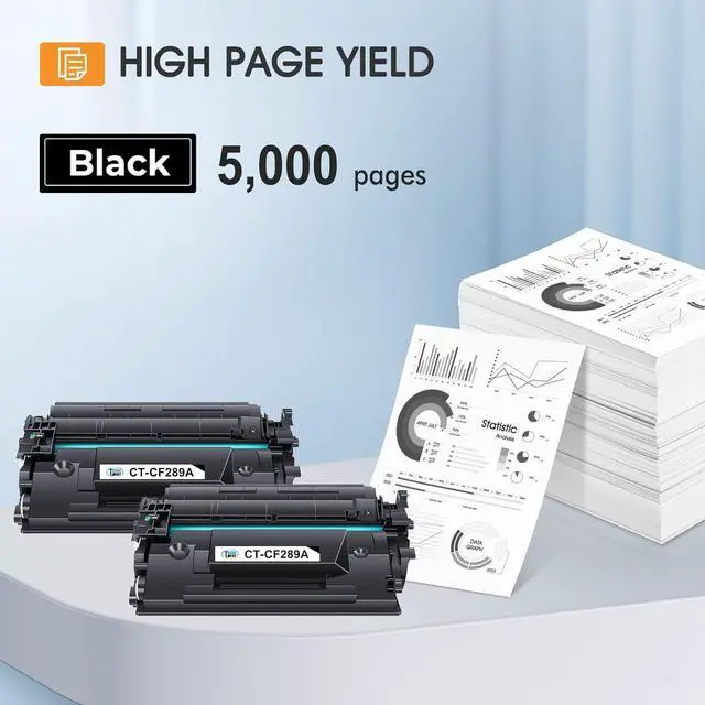 Page Yield: Up to 5,000 pages for 89A CF289A black toner cartridge (Letter A4, at 5% coverage)