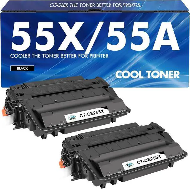What's in the box: 2 pack compatible CE255X 55X P3015 black toner cartridge compatible for HP 55X black toner cartridges