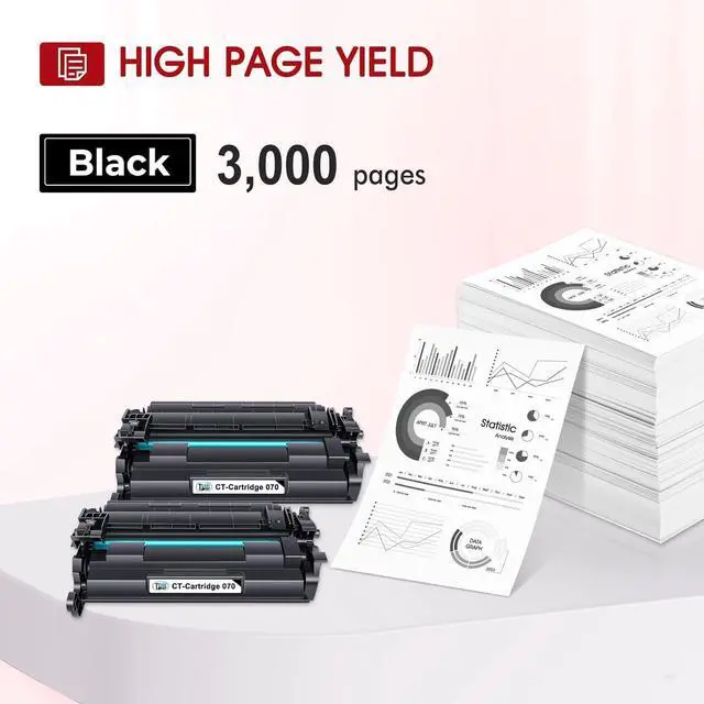 Page Yield: Up to 3,000 pages for each 070 toner cartridge(Letter/A4, at 5% coverage)