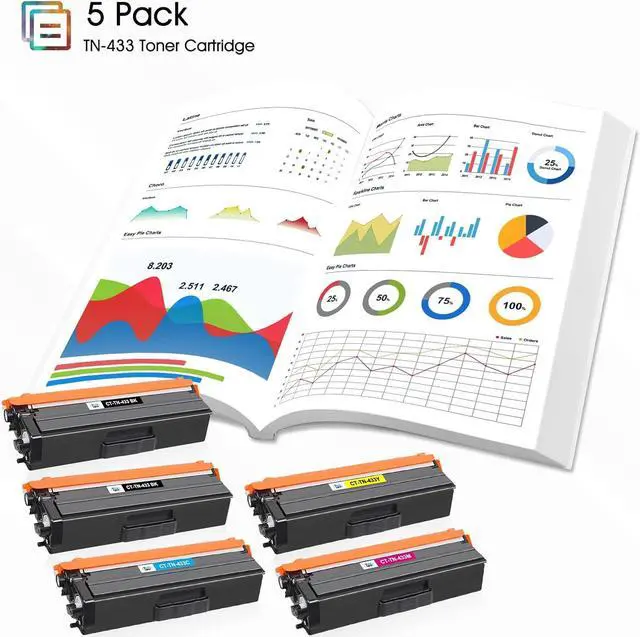 Include 5 Pack toner cartridges in the box: 2 Black (TN433BK); 1 TN433C (Cyan); 1 TN433M (Magenta); 1 TN433Y (Yellow) Toner Cartridge
