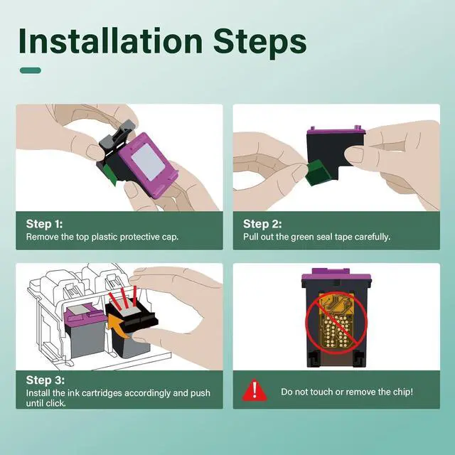 Troubleshooting steps: If the ink cartridge is not recognized or functioning properly, try these solutions:1. Clean the cartridge and printer contacts with the accompanying eraser to remove dust or debris. 2. Check and adjust printer settings to ensure proper recognition. 3. Avoid touching the chip or ink nozzles. A clogged printhead will disrupt the printing function