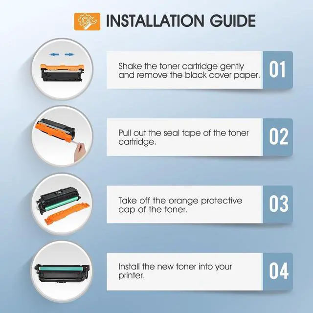 Page Yield: Up to 11,000 pages for CE400X toner and 6,000 pages per CE401A CE402A CE403A toner at 5% coverage (Letter A4)