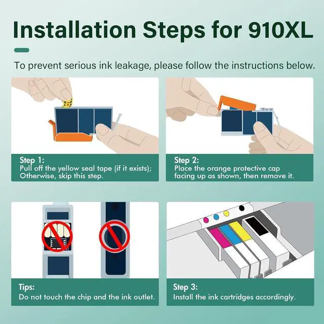 Note: Please confirm compatible printers model before purchasing, this is not an OEM 910XL 910 Ink Cartridges for HP Printers Product